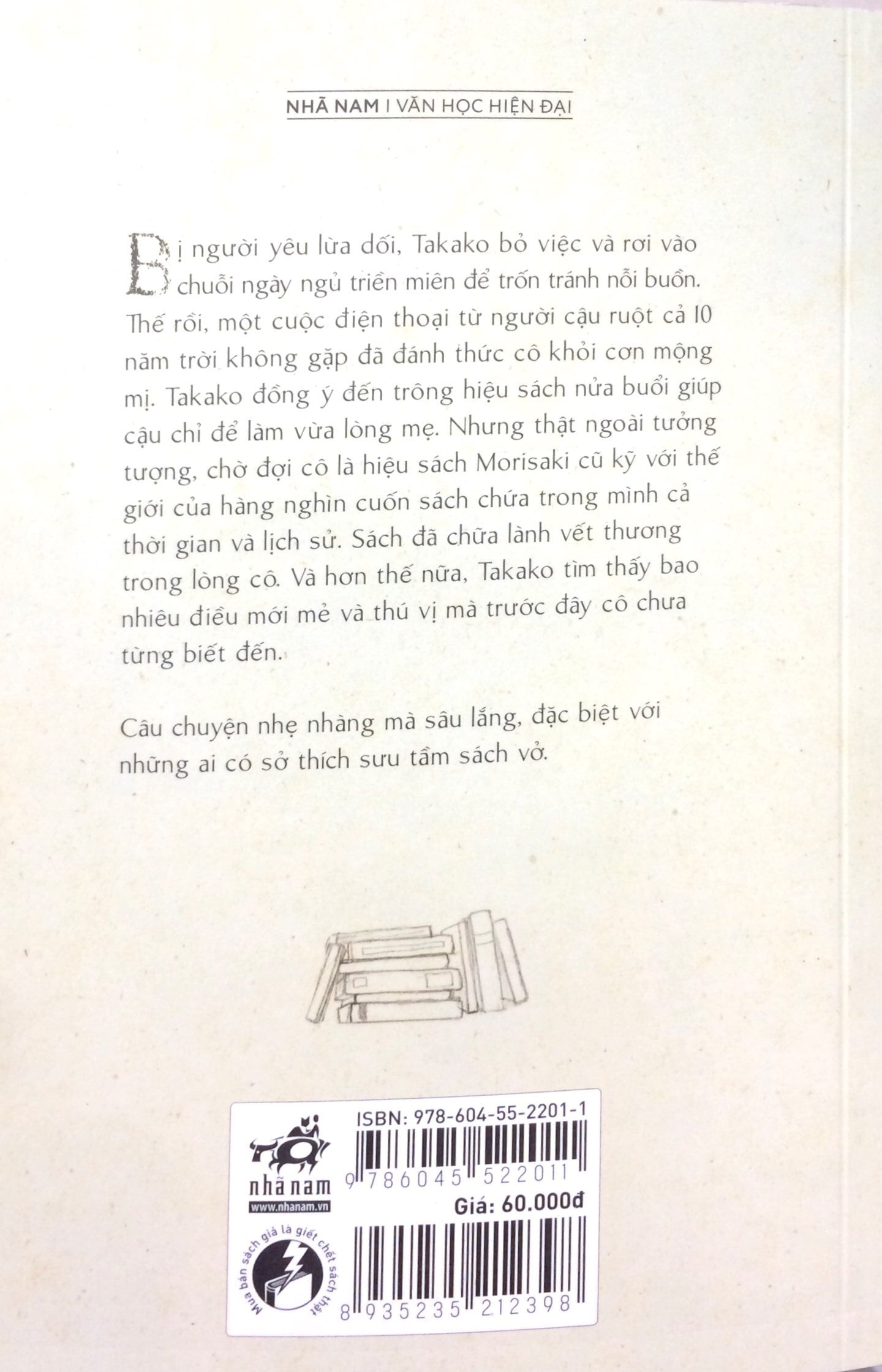 Bị người yêu lừa dối, Takako bỏ việc và rơi vào chuỗi ngày ngủ triền miên để trốn tránh nỗi buồn. Thế rồi, một cuộc điện thoại từ người cậu ruột cả 10 năm trời không gặp đã đánh thức cô khỏi cơn mộng mị. Takako đồng ý đến trông hiệu sách nửa buổi giúp cậu chỉ để làm vừa lòng mẹ. Nhưng thật ngoài tưởng tượng, chờ đợi cô là hiệu sách Morisaki cũ kỹ với thế giới của hàng nghìn cuốn sách chứa trong mình cả thời gian và lịch sử. Sách đã chữa lành vết thương trong lòng cô. Và hơn thế nữa, Takako tìm thấy bao nhiêu điều mới mẻ và thú vị mà trước đây cô chưa từng biết đến.